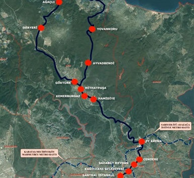 Santral İstanbul'dan başlayacak olan Dekovil hattı, Kağıthane Deresi ve Cendere yolunu izleyerek Mithatpaşa'da 2 kola ayrılacak. Kollardan biri Ayvadbendi ve Yovankoru'dan, diğeri ise GÅktürk, Odayeri ve Ağaçlı güzergahından Karadeniz sahiline ulaşacak. Hat üzerinde 14 istasyon yer alıyor.